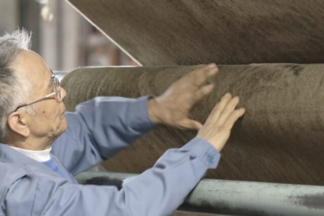 大阪泉大津の130年以上の歴史を持つ毛布産業の伝統と技術を背景に、「CALDO NIDO(カルドニード)」は熟練の起毛師による丁寧な仕上げにこだわっています。起毛・艶出し・毛揃えなど40工程以上におよぶ工程を経て、一枚一枚を仕上げています。