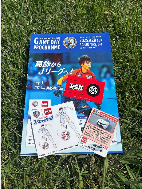 競技場の中に入ったら、なんと、トミカと南葛のスペシャルシール&トミカカードがもらえました!